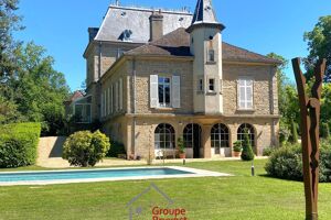 À 1h de Lyon et 10 mn de Mâcon, cette magnifique propriété incarne l'élégance et l'histoire du milieu du XIXe. Son cadre enchanteur de 3,2 hectares de parc arboré, orné de magnifiques arbres centenaires comme des cèdres et des séquoias, en fait un lieu idéal pour des projets d'événementiel ou d'accueil. Une allée de platanes mène à la propriété qui se distingue par son logis, flanqué de deux tours, son ancien pigeonnier, un tinailler (un grand bâtiment destiné aux réceptions) qui a déjà vu de nombreuses célébrations familiales, une piscine entièrement rénovée, et d'un ancien pigeonnier. L'habitation, répartie sur plusieurs niveaux, offre un espace généreux avec des pièces de réception élégantes et des chambres, certaines rénovées et d'autres à rénover. Le rez-de-jardin se distingue par son orangerie transformée en cuisine d'été, un petit local piscine, une chaufferie, une cave à vin, un cellier et d'anciennes salle à manger et cuisine du personnel. L'entrée principale, accessible depuis un superbe perron, frappe par son sol en mosaïque et ses murs fraîchement restaurés, annonçant une ambiance raffinée. Elle mène à un vaste vestibule qui dessert un vestiaire, plusieurs salons, une grande salle à manger avec cheminée et de hautes fenêtres donnant sur le parc, vaste cuisine avec son office-buanderie, 3 chambres chacune avec cheminée et salle d'eau. À l'étage, un palier distribue 2 chambres et une pièce à rafraîchir. La partie supérieure de l'étage, ainsi que les combles, nécessitent une rénovation complète pour aménager les anciennes chambres. Le tinailler, avec ses deux niveaux, constitue une vaste dépendance qui pourrait être organisée en salle de réception ou en lieu de rassemblement pour divers événements qu'il s'agisse de mariages, de séminaires ou de réceptions privées. Enfin, le parc, magnifiquement entretenu, ajoute une dimension poétique avec ses grands magnolias et ses multiples parterres fleuris, offrant un cadre serein et prestigieux. Une propriété d'exception, idéale pour ceux cherchant à allier le charme historique et le potentiel événementiel. Contacter Valérie de Rancourt 07.86XX22.60. 71 VALERIE DE RANCOURT 07 86 22 60 71 valerie.derancourt@pruvost-immo.com Nos honoraires d'agence sont à la charge de l'acquéreur mais sont bien compris dans le prix affiché. Deux avantages pour l'acquéreur : - Transparence. - Baisse des frais d'enregistrement. Les informations sur les risques auxquels ce bien est exposé sont disponibles sur le site Géorisques : www.georisques.gouv.fr.