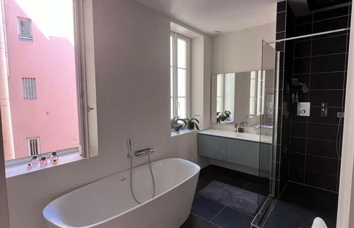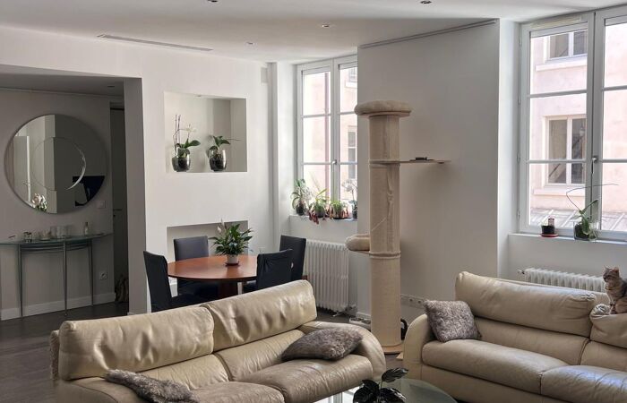 Superbe adresse, idéalement situé place Bellecour dans un bel immeuble bourgeois sur son terrain au 3eme étage avec ascenseur, avec charmes et volumes et belle rénovation pour ce bien d’exception à usage mixte de 155,19 m2 loi Carrez de plain-pied. Le bien se compose de 6 pièces avec un vaste séjour, salle à manger cuisine US entièrement équipée, buanderie, cellier, 4 chambres parquetées avec 2 salles de douches dont une suite parentale avec salle de bains privative et grand dressing et 1 grand bureau. Une cave de 7 m2 et un grand grenier de 10 m2 complètent le bien. Le chauffage est individuel au gaz et la climatisation est réversible. Les charges sont faibles. Convient pour un usage de bureaux, profession libérale, ou mixte.