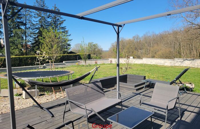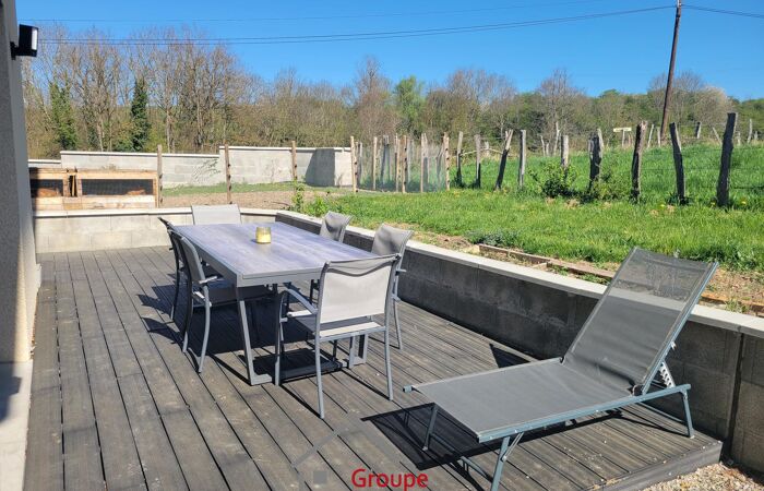 L'extérieur est clos , arboré et aménagé d'une terrasse en U d'environ 85 m2 installée sur 3 cotés de la maison.
