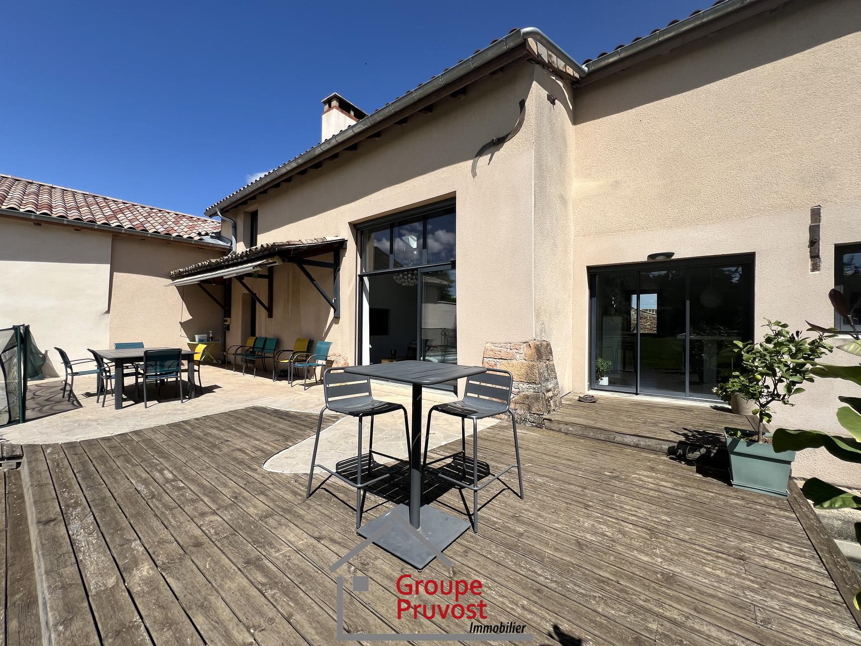 Charnay les Mâcon - Dans le très prisé quartier de Levigny, cette maison de caractère en pierre allie charme et confort moderne. Très lumineuse grâce à ses grandes baies vitrées, elle offre un vaste séjour avec plafond cathédrale et cheminée, une cuisine conviviale et une suite parentale avec salle de bains et rangement. À l’étage, une mezzanine dessert trois chambres, un bureau et une salle d’eau.
