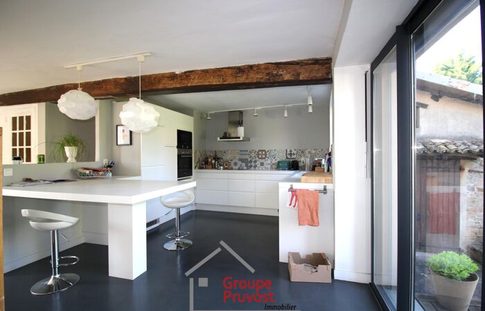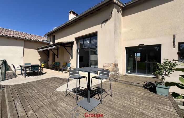 Charnay les Mâcon - Dans le très prisé quartier de Levigny, cette maison de caractère en pierre allie charme et confort moderne. Très lumineuse grâce à ses grandes baies vitrées, elle offre un vaste séjour avec plafond cathédrale et cheminée, une cuisine conviviale et une suite parentale avec salle de bains et rangement. À l’étage, une mezzanine dessert trois chambres, un bureau et une salle d’eau.