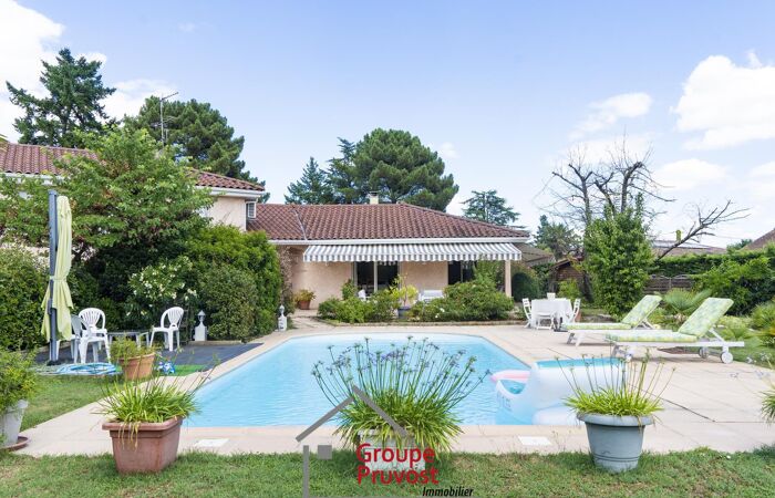 Aux portes de LYON ,ST BERNARD ANSE Maison de 240m2 située dans un environnement résidentiel ,édifiée sur un magnifique terrain arboré de 3620 m2 divisible et constructible avec piscine .