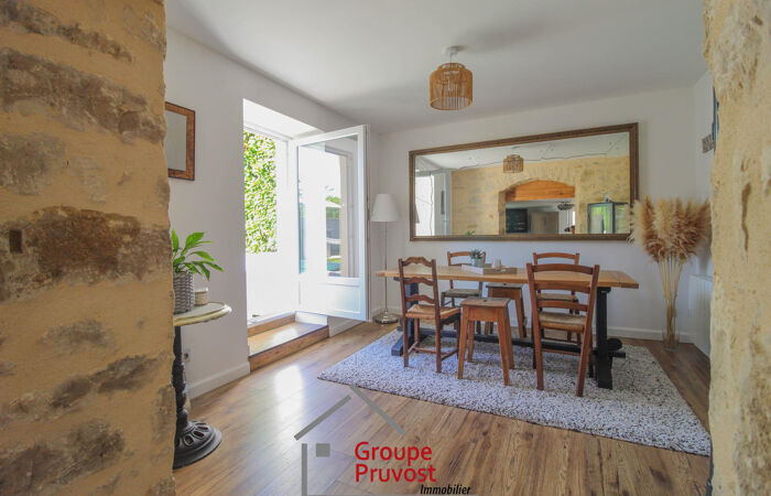 Les extérieurs proposent plusieurs espaces et orientations, une terrasse de 30m², un jardin avec piscine et un petit jardin de l'autre côté de la maison. Stationnement facile devant la maison. Ce bien atypique a été entièrement rénové (toiture, isolation, électricité, plomberie, huisseries, façade) et conviendra aux amoureux de l'ancien. À découvrir. Agence immobilière PRUVOST : Virginie FOURNIER - 06.06.49.XX74.46 / Agent Commercial, RCP n° VD 7.000.002 / N° ACI01288