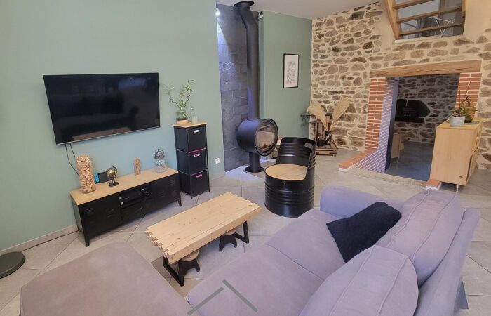 La maison est équipée d'un poêle à bois et de radiateurs électriques.