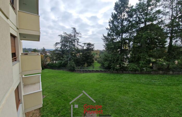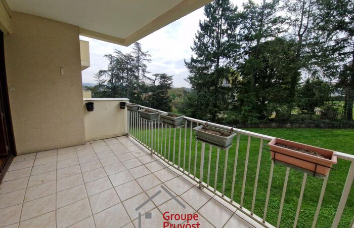 Craponne, très bel appartement T3 de 94 m² au 1ᵉʳ étage / 5 avec parc arboré, belle vue et sans vis-à-vis, deux chambres dont une avec un dressing de 5 m², une cuisine semi-ouverte sur salon de 30 m², avec accès direct sur le balcon de 9 m². Une salle d'eau, WC séparé. Double vitrage.