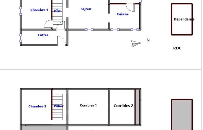 60 m² habitables – 4 pièces – terrain de 2 485 m²
