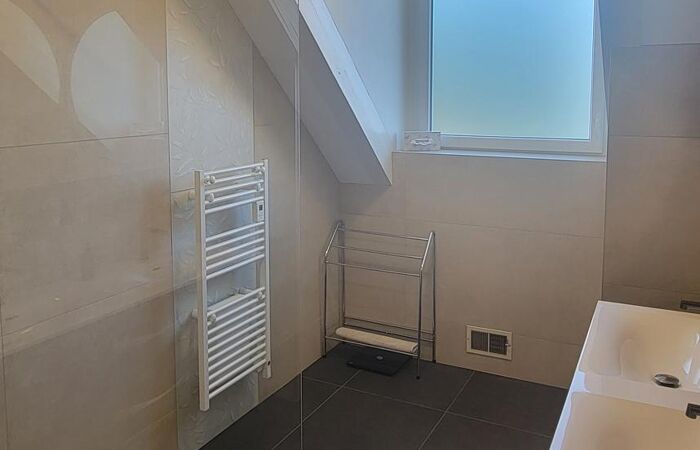 À l’étage, l’espace nuit propose six chambres confortables et baignées de lumière, une salle d’eau avec douche à l’italienne, une salle de bains avec WC, ainsi qu’un WC séparé.