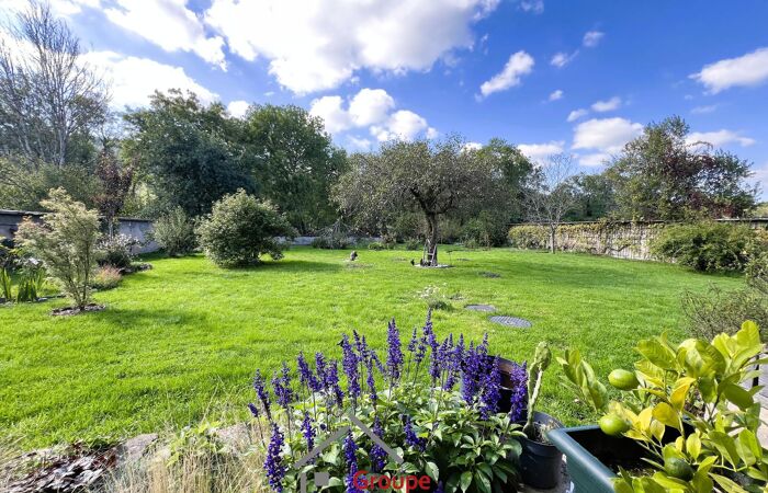 Coté extérieur, très beau jardin clos de murs facile à entretenir et qui donne accès à un petit cours d'eau en bout de propriété.