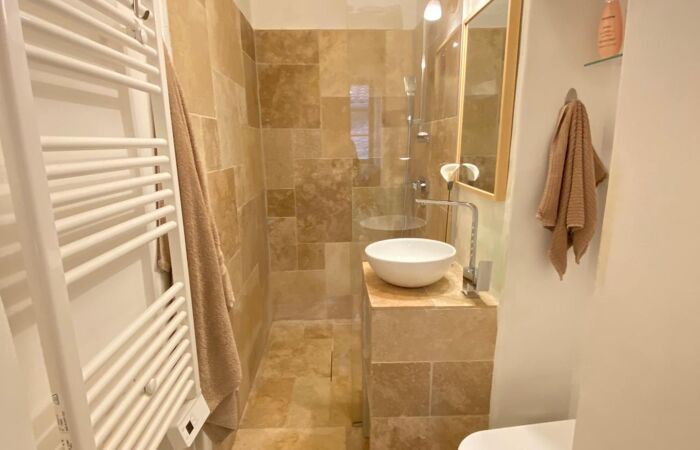 Face à la maison, une dépendance avec son joli jardin encadré de murs en pierre, permet de profiter des extérieurs au calme et bénéficie de l'électricité fournie par un panneau solaire avec batteries. La dépendance a également fait l’objet d’une rénovation.