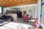 Dans le prolongement de la maison, une belle terrasse couverte avec pool house devant la piscine.