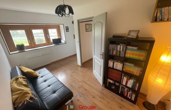 sur un vaste séjour-cuisine (51 m²) avec plancher chauffant et poêle à bois.