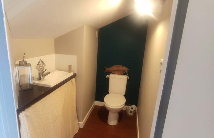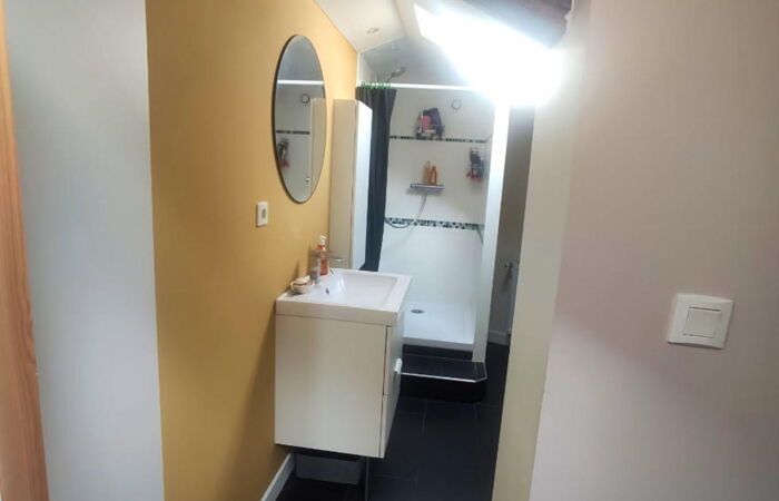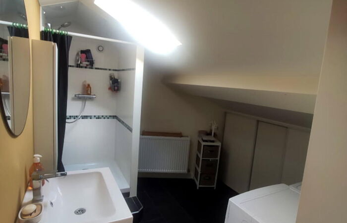 Une cuisine équipée et ouverte sur le salon / séjour, un espace bureau, une belle chambre, une salle d'eau équipée d'une douche et un WC séparé.