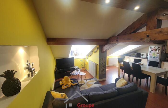 ROANNE, idéalement situé à proximité de l'IUT, laissez vous séduire par cet appartement rénové aux poutres apparentes se trouvant au 3em étage sans ascenseur où vous n'avez plus qu'a poser vos valises !