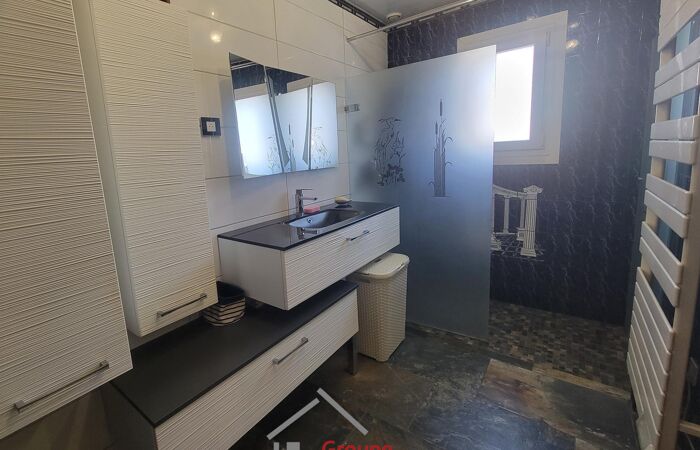 Une salle d'eau équipée d'une douche à l'italienne et d'un WC séparé, une buanderie, un atelier ainsi qu'un garage de 55 m2.