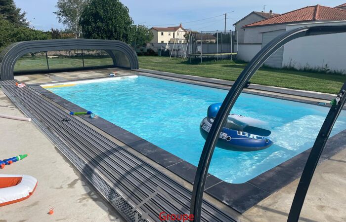 À l'extérieur, vous profiterez d'une très grande piscine au sel de 10 × 5 exposée plein sud équipée d'un dôme, d'un kiosque abrité, d'une dépendance fermée et équipée d'un four à pizza, fumoir et barbecue, d'un puits, d'un terrain de pétanque.