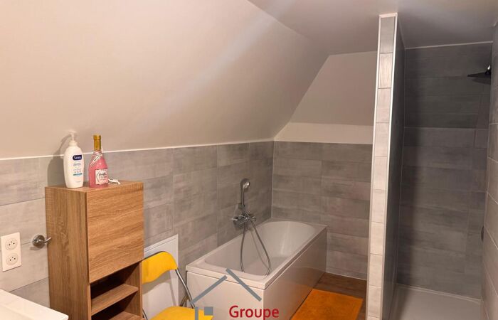 À l'étage, vous retrouverez 4 belles chambres mansardées, une pièce utilisée en salle cinéma, une salle d'eau équipée d'une douche et d'une baignoire , une deuxième salle d'eau a rénover, un WC séparé.