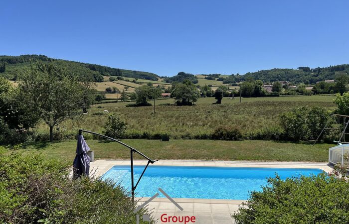 Dans le dynamique village de Matour, au calme et a proximité immédiate des commodités (commerces et écoles maternelles, primaires et collège), cette maison de 170 m², construite en 2007 sur une parcelle de 1 248 m², offre de beaux volumes et un cadre de vie agréable. Au rez-de-chaussée, vous découvrirez un vaste séjour ouvert sur une cuisine entièrement équipée avec accès direct sur la grande terrasse. Vous trouverez également un cellier/buanderie, ainsi qu’un espace nuit de deux chambres (dont une avec placard intégré). Une grande salle d’eau avec douche et baignoire, ainsi que deux WC indépendants. À l’étage, deux autres chambres spacieuses offrent un espace nuit supplémentaire, accompagnées d’une deuxième salle d’eau avec WC.