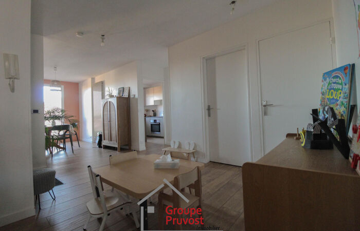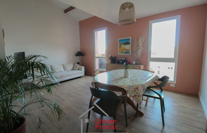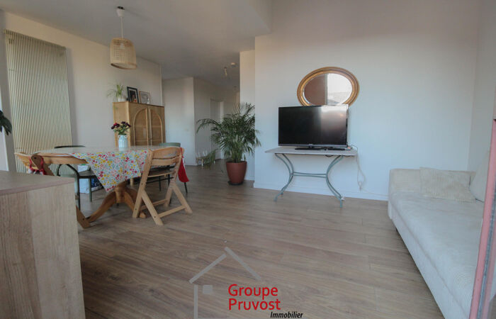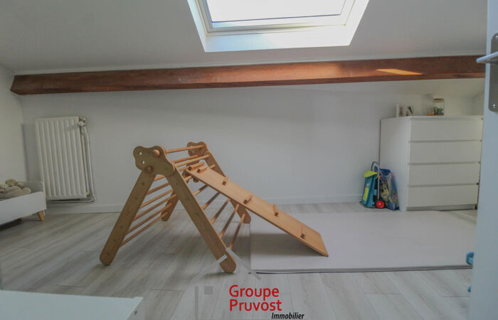 L'agence Pruvost vous propose en plein centre-ville, proche de toutes commodités et gare, cet appartement spacieux en duplex d'une surface de 95m². Il est composé d'une vaste entrée qui dessert une pièce de vie avec salon (accès balcon), salle à manger et cuisine équipée, 2 chambres (avec accès à un autre balcon), une salle de bains et WC séparés. A l'étage, un dégagement, 2 chambres (dont une avec balcon), salle d'eau et WC. Cet appartement lumineux et spacieux a été rénové et permettra ainsi une installation rapide sans travaux. Ce bien est vendu avec un garage en sous-sol et une cave, véritable atout en centre-ville. Emplacement idéal pour tout faire pied. À découvrir. Agence immobilière PRUVOST : Virginie FOURNIER - 06.06.49.XX74.46 / Agent Commercial, RCP n° VD 7.000.002 / N° ACI01288