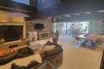 en rez-de-chaussée vous retrouverez une cuisine équipée et ouverte sur le salon séjour s'ouvrant sur le jardin, un deuxième séjour de 55 m2 s'ouvrant sur la piscine, une deuxième cuisine équipée et fermée, une buanderie, un WC séparé.