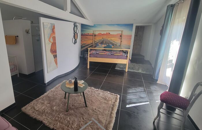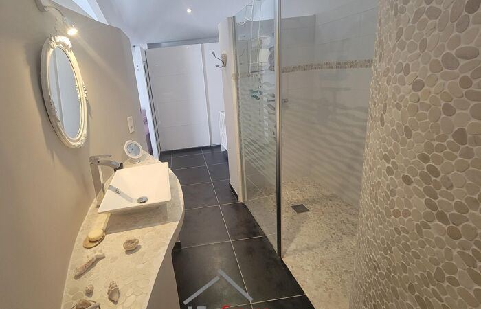 Au premier étage, un espace salon / détente, mezzanine et 3 grandes chambres avec chacune sa salle d'eau et son WC.